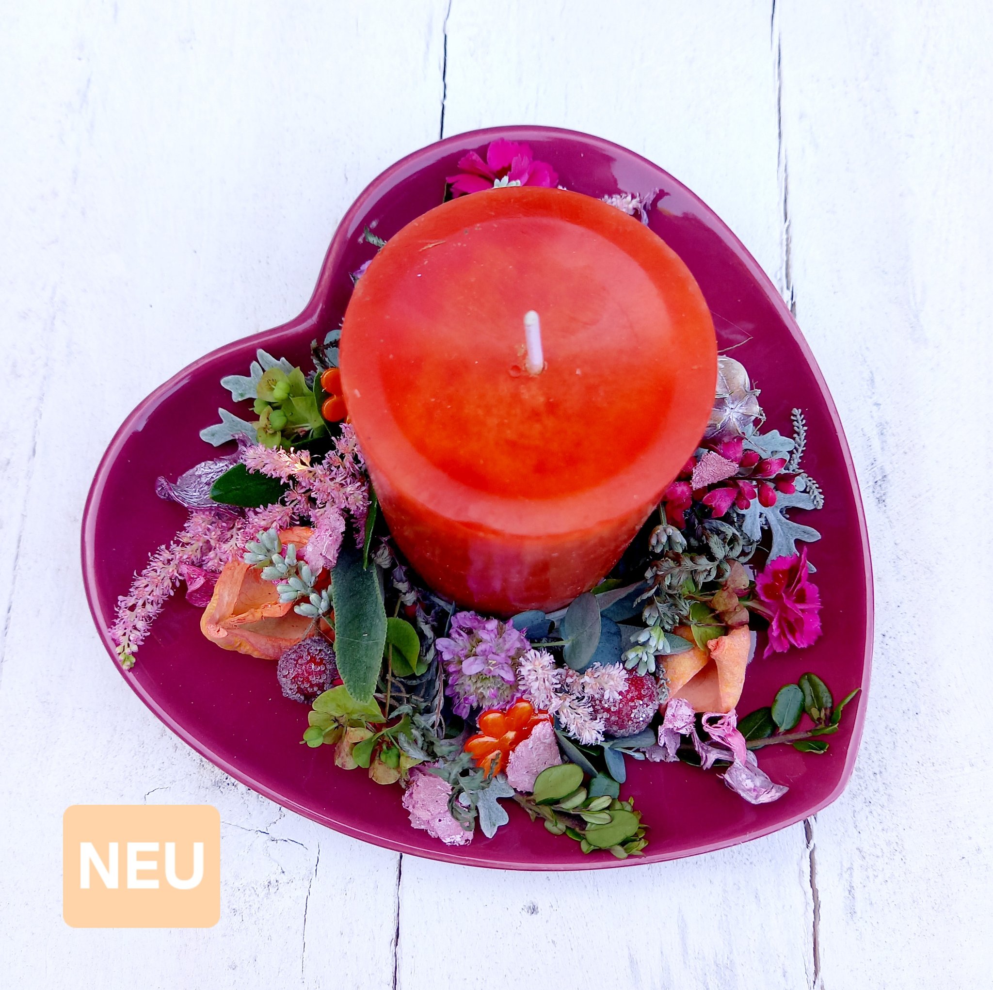 Floristik Kurs; im Herzteller arrangieren wir gemeinsam schöne Gebinde.